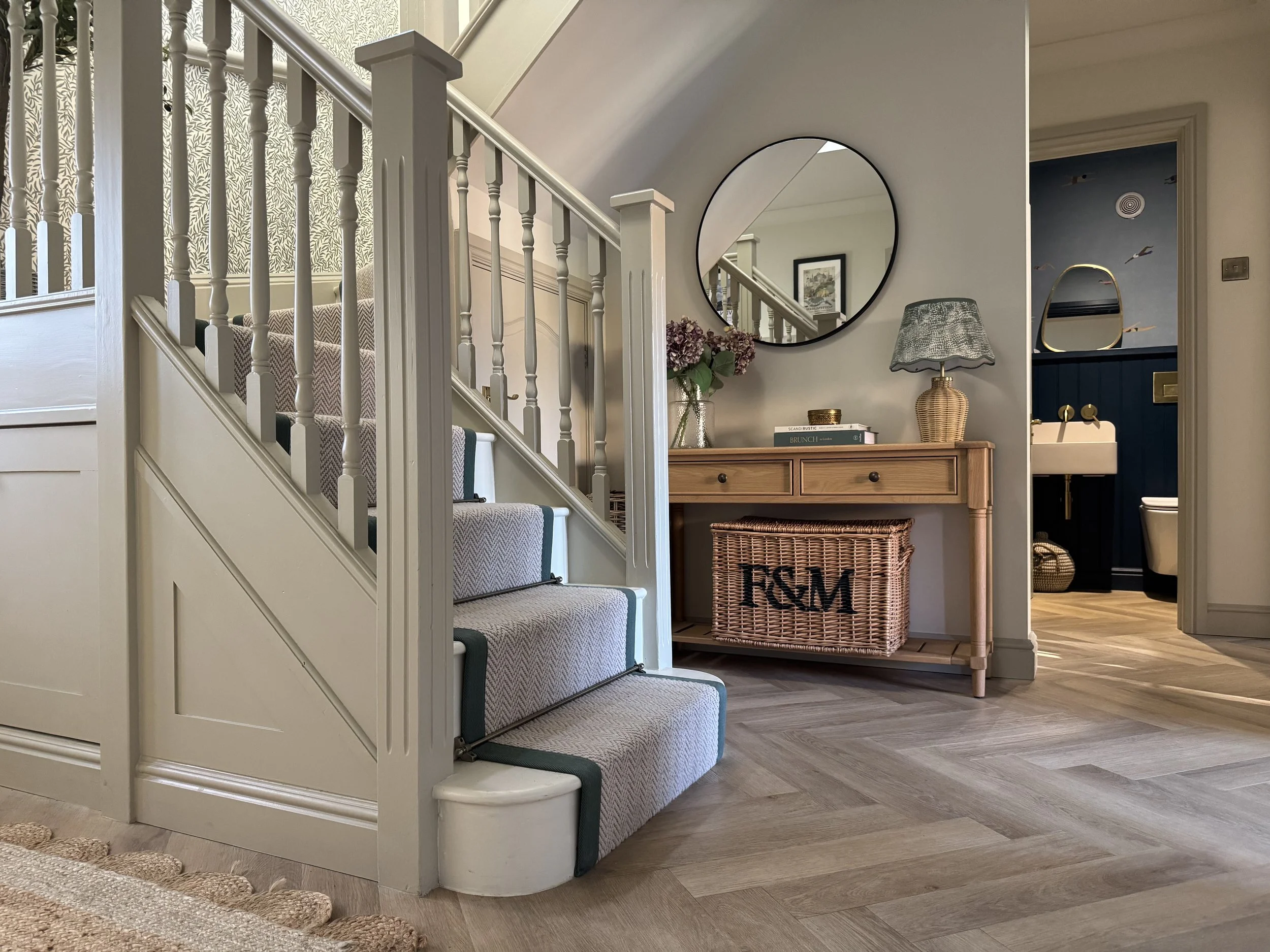 The client wanted the hallway to feel calm, welcoming, and nicely put together, something that makes a good first impression. They liked soft, natural colours, like greens and neutrals.